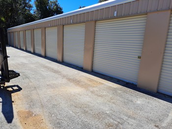 We have four sizes available in our self storage mini-warehouses. The three larger sizes have 8' x 8' roll-up doors. You provide your own lock or we have them for sale in our office for your convenience. The non-climate controlled units are located in a gated area behind the main building and are accessible from 8am – 6pm Monday thru Saturday. If access is needed other than the times listed, please feel free to call the office at 386-677-6462 to make arrangements.